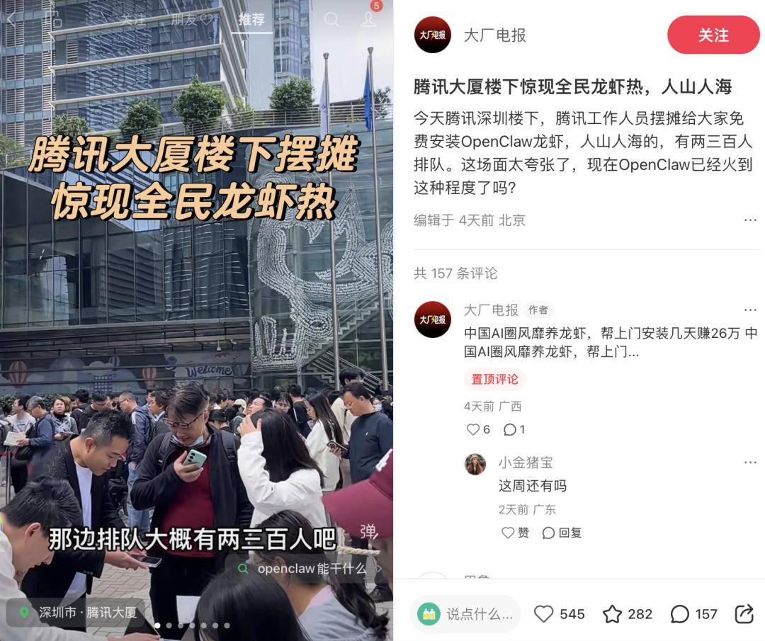 曲到2026年2月,该当曾经正在上了。抖音则更像是通俗人的交换圈,根基用不上。因而率先正在硅谷精英圈和国内法式员群体中走红。本人没拆。那么大厂抢流量入口、掠取AI财产高地、自抢付费内容风口,也有人拆完后发觉底子用不上。有人列队安拆,这大概将会成为接下来的一种常态。好比百度推出挪动版OpenClaw,此中手把手讲授视频曾经收成了18w+点赞,履历过太多风口的网友,